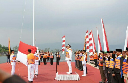 Pemkab Solok Gelar Upacara HUT RI Ke 78 di Tengah danau singkarak