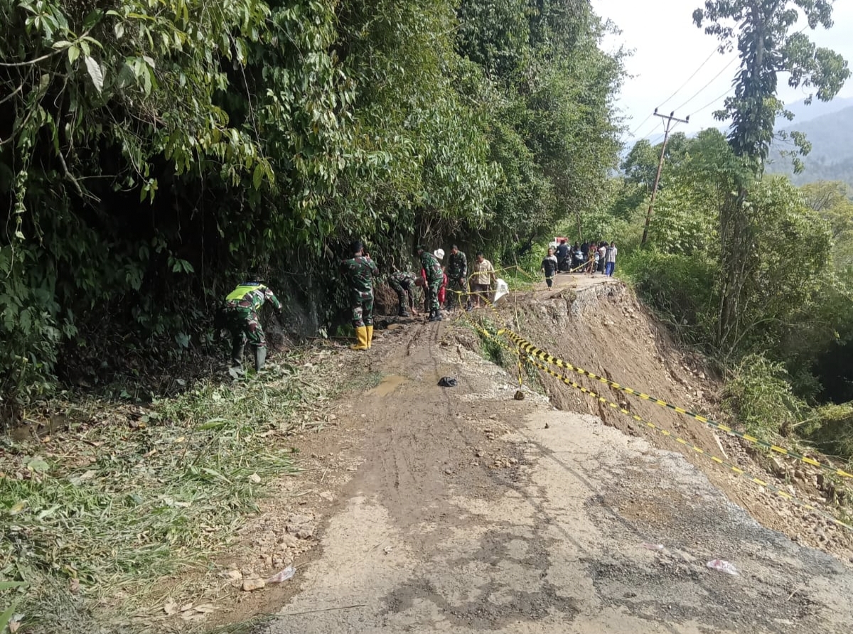 Kondisi jalan longsor di andaleh nagari sariak alahan tigo kabupaten solok