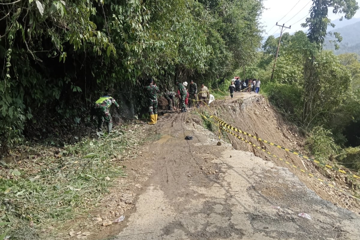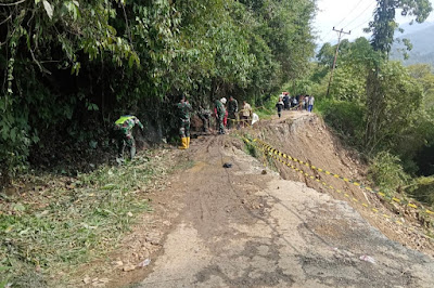 Jalan sariak bawah terputus akibat longsor, masyarakat sariak sungai abu laksanakan gotong royong jalan padang licin kec hiliran gumanti
