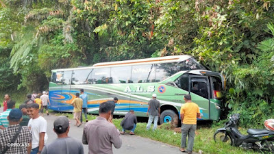 Sementara itu, video yang diterima oleh Sumbarnarasi menunjukkan bahwa bus tersebut berhenti setelah menabrak dinding perbukitan di pinggir jalan.