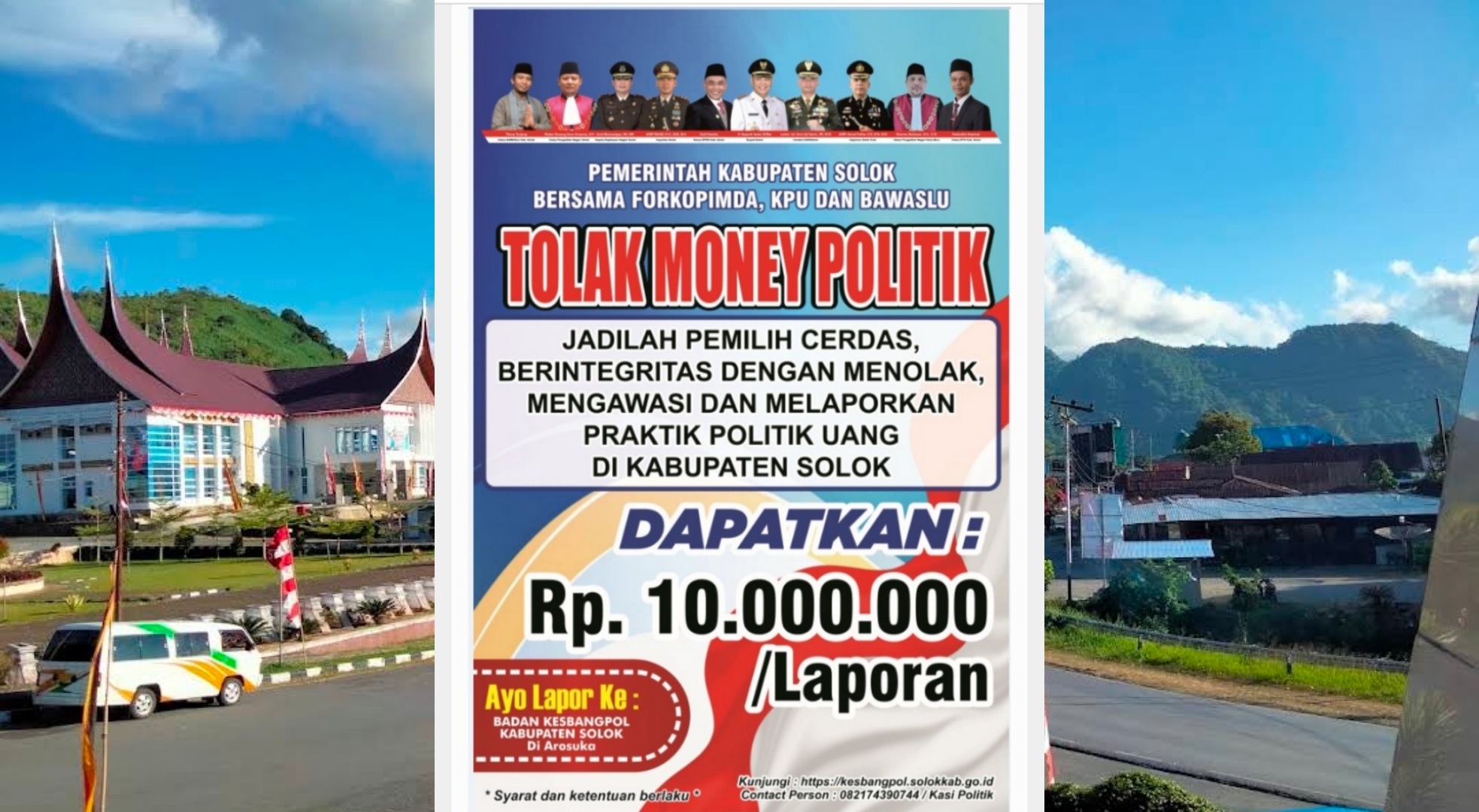 Sebagai bagian dari upaya memastikan kelancaran Pemilu yang adil, Bupati Solok mengingatkan masyarakat akan larangan kampanye menggunakan uang atau materi lainnya, sesuai dengan Pasal 280 ayat (1) UU Pemilu. Pemerintah Kabupaten Solok mendorong masyarakat untuk aktif melaporkan setiap tindakan Money Politik yang terjadi.