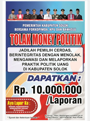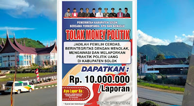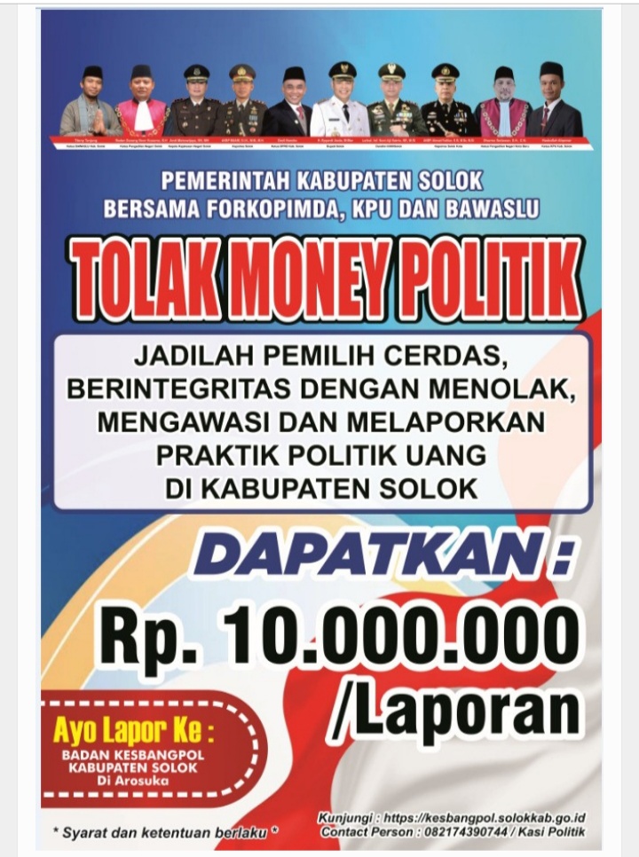 "Kami mengajak masyarakat Kabupaten Solok untuk bersama-sama mengawasi dan melaporkan setiap indikasi Money Politik yang mereka temui," tambah Bupati Epyardi Asda.