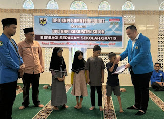 Bekerja sama dengan KNPI Kabupaten Solok, KNPI Sumbar mendistribusikan ratusan seragam sekolah gratis untuk pelajar SD yang berasal dari keluarga kurang mampu di sejumlah nagari di Kecamatan Kubung dan Kecamatan Gunung Talang, Kabupaten Solok. Penyerahan bantuan ini berlangsung di Nagari Koto Gadang Guguak, Ahad (24/11/2024), dan dihadiri oleh Ketua DPD KNPI Sumbar, Nanda Satria, bersama jajaran pengurus. Selain itu, hadir pula Ketua KNPI Kabupaten Solok, Arif Firman Bachtas, yang didampingi oleh Sekretaris Bori Fernandes serta sejumlah pengurus lainnya.