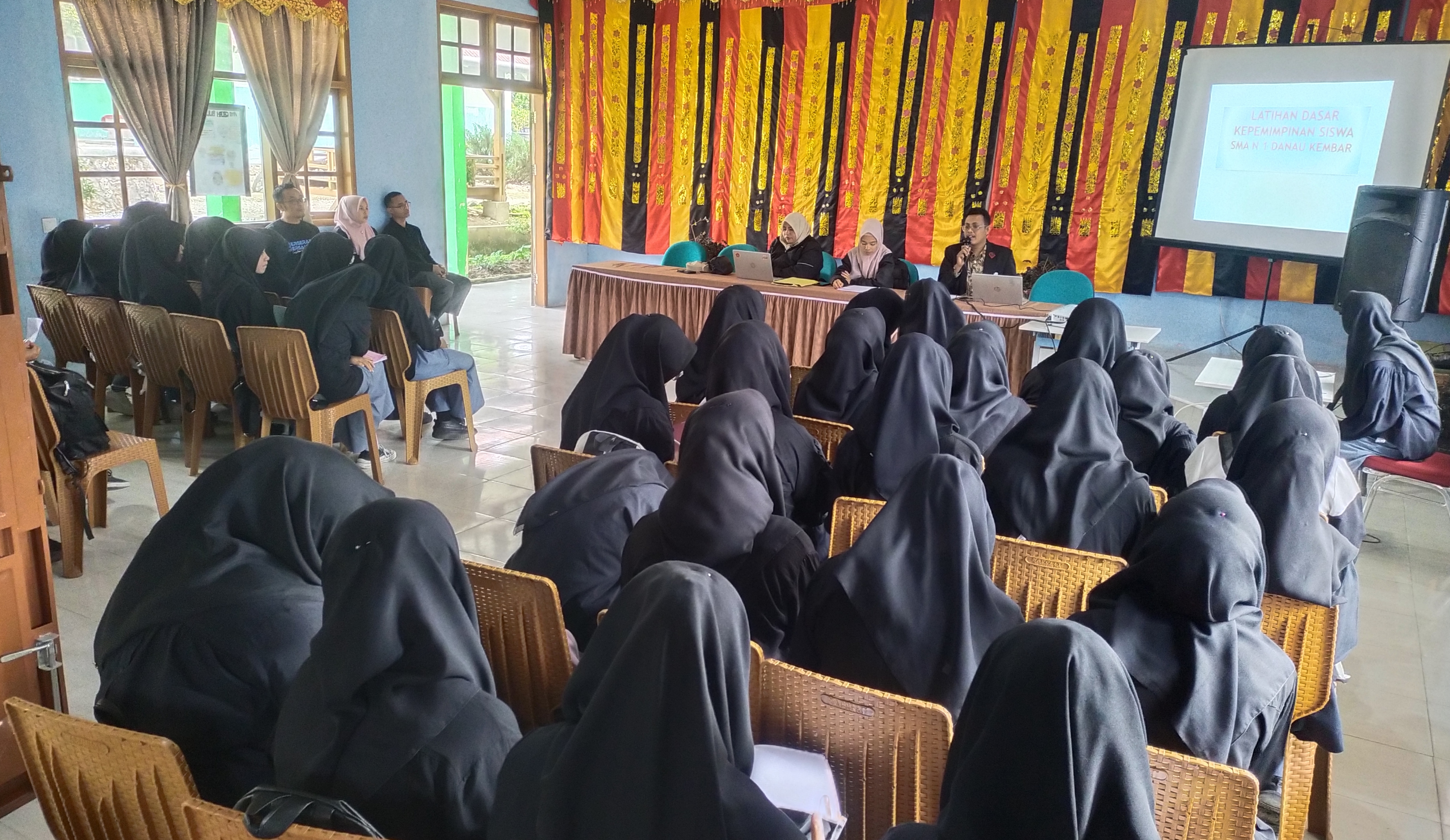 Saat berlangsungnya pembukaan pelatihan dasar  yang di hadiri langsung oleh Bapak Muhammad Nur selaku PLH kepala sekolah SMAN 1 Danau Kembar, Master of training Andri Juli Saputra, Pemateri pertama tentang kepemimpinan organisasi widya Ningsih, Pemateri kedua tentang teknik rapat Ernawati dan moderator Egis.